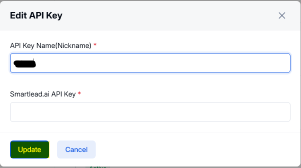 Update the Name or API Key as needed.