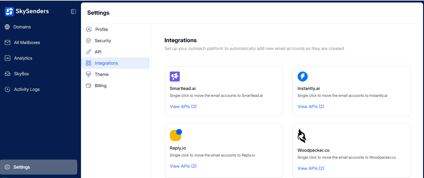 You’ll see below list applications that can be integrated with SkySenders.