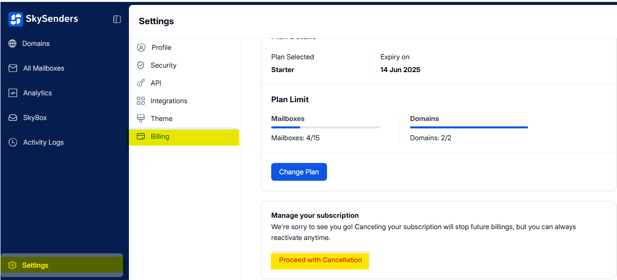 Click on “Settings” located in the bottom-left corner of the dashboard.