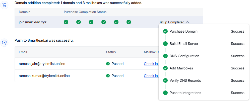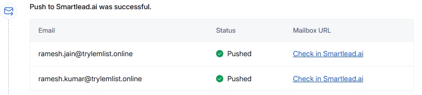 Link to verify the push status will be available in the successful push action log under the mailbox URL column.