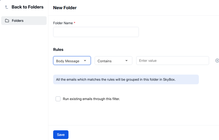 Check "Run existing emails through this filter" to apply rules to current emails. (Optional)