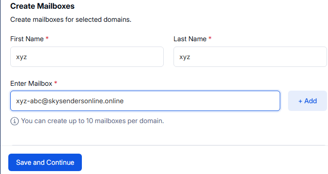 Once you’ve added the desired mailboxes, click “Save and Continue.”