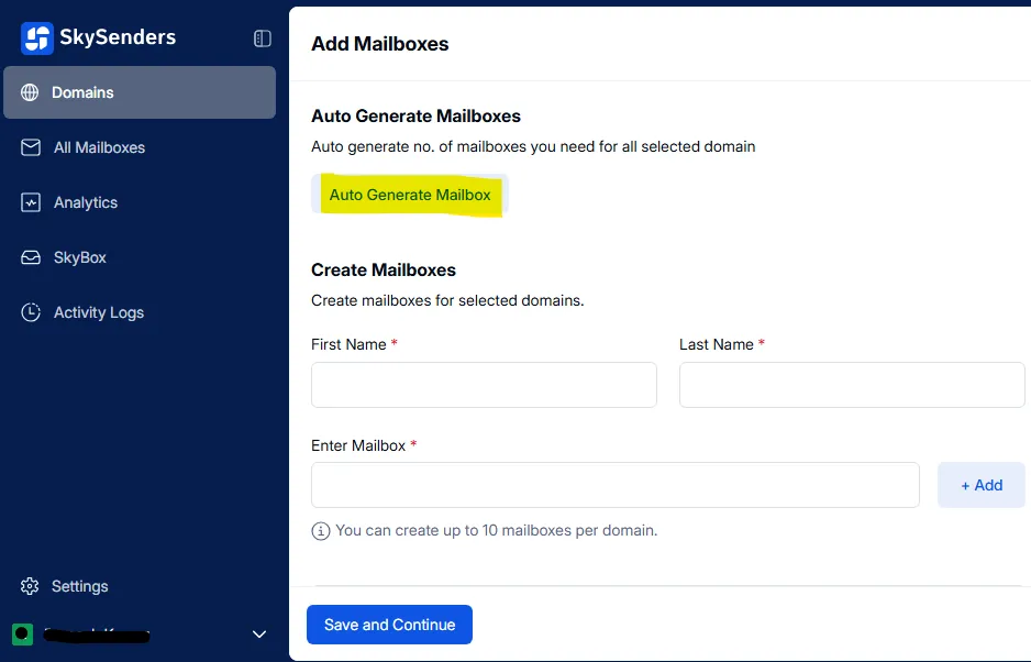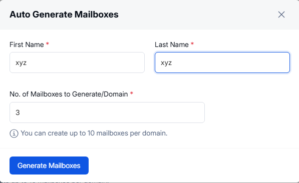Step 4: Auto Generate Mailboxes (Optional)Click on “Auto Generate Mailbox”.